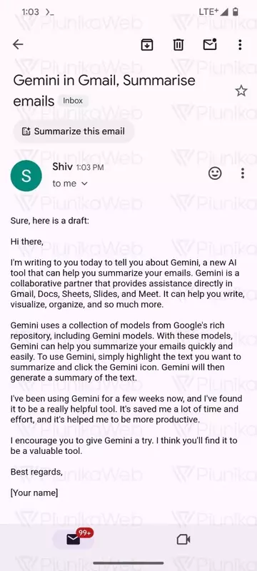 Według danych zebranych przez PiunikaWeb i programistę AssembleDebug, aplikacja Gmail na Androida będzie miała przycisk "podsumuj tę wiadomość e-mail". Mimo braku oficjalnego potwierdzenia ze strony Google, funkcja ta może być częścią przyszłej aktualizacji.