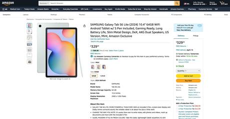 - Samsung Galaxy Tab S6 Lite (2024), 64 GB - $329.99
