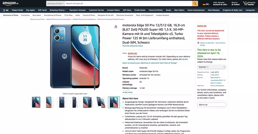 Przed europejską zapowiedzią Motoroli Edge 50 Pro, nowy produkt pojawił się na niemieckim Amazonie.