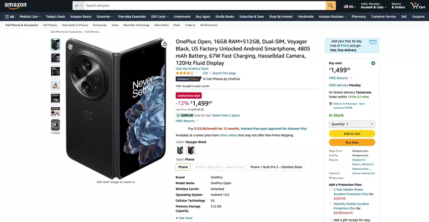 Składany smartfon OnePlus Open z układem Snapdragon 8 Gen 2 dostępny na Amazon z rabatem w wysokości 200 USD