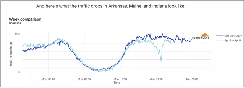 Nawet stany z częściowym zaćmieniem, takie jak Massachusetts i Kansas, odnotowały zauważalny spadek ruchu, ponieważ ponad 85% słońca zostało zablokowane w niektórych obszarach. Ogólnie rzecz biorąc, ruch w USA spadł tylko o 8%, a żądania HTTP o 12%.