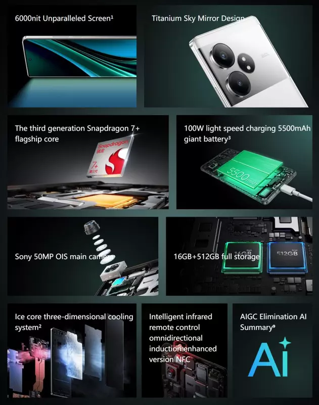 Realme GT Neo 6 SE jest napędzany procesorem Snapdragon 7+ Gen 3 w połączeniu z pamięcią RAM LPDDR5x i pamięcią masową UFS 3.1. Gadżet jest również wyposażony w baterię 5500 mAh, szybkie ładowanie 100 W, stopień ochrony IP65, NFC, głośniki stereo i czujnik podczerwieni do sterowania technologią.