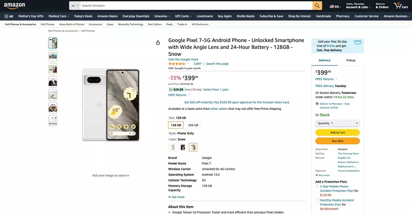 - Pixel 7, 256 GB (Snow, Obsidian) - $399.99.99 $399.99.00, $399.99.