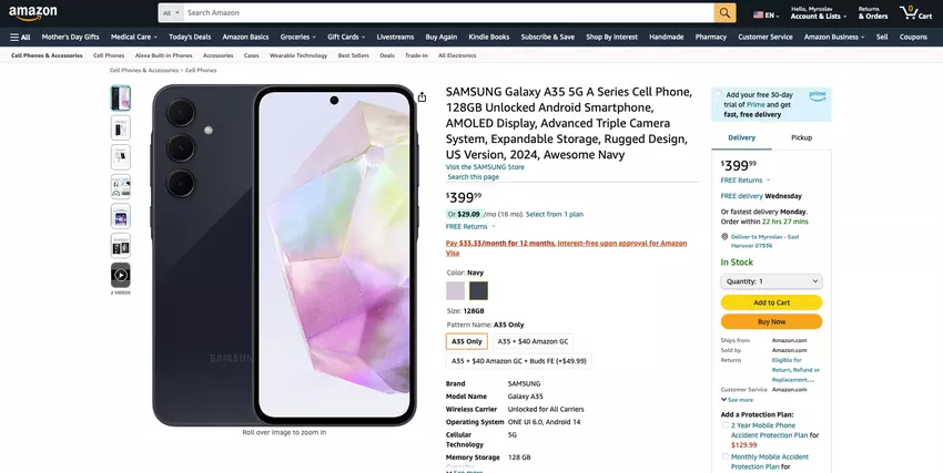 Smartfon można już kupić za $399.99. Dostępne są dwa kolory i jedna modyfikacja pamięci - 6/128 GB. Ponadto Samsung oferuje kupującym Galaxy A35 50% zniżki na słuchawki Galaxy Buds FE oraz bon podarunkowy na 40 dolarów. Taki zestaw kosztuje check price on amazon.
