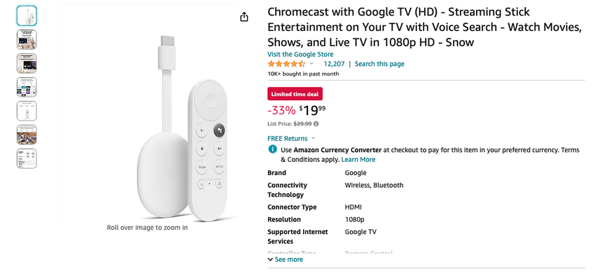 Oferta ograniczona czasowo: Chromecast z Google TV (HD) na Amazon za 33% taniej