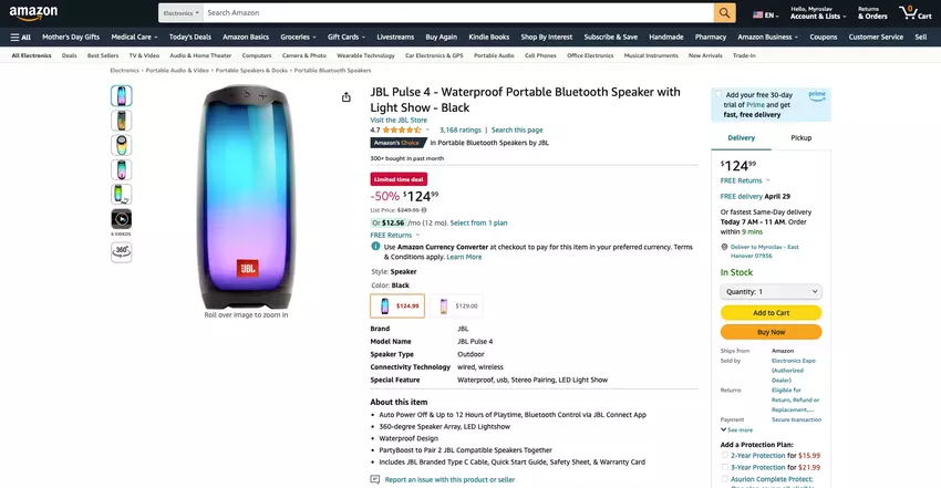 JBL Pulse 4 na Amazon: bezprzewodowy głośnik z podświetleniem, ochroną IPX7 i do 12 godzin pracy na baterii za 124,99 USD (124 USD zniżki)