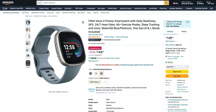 Fitbit Versa 4 z NFC, GPS i aplikacjami Google jest dostępny za 50 USD taniej na Amazon