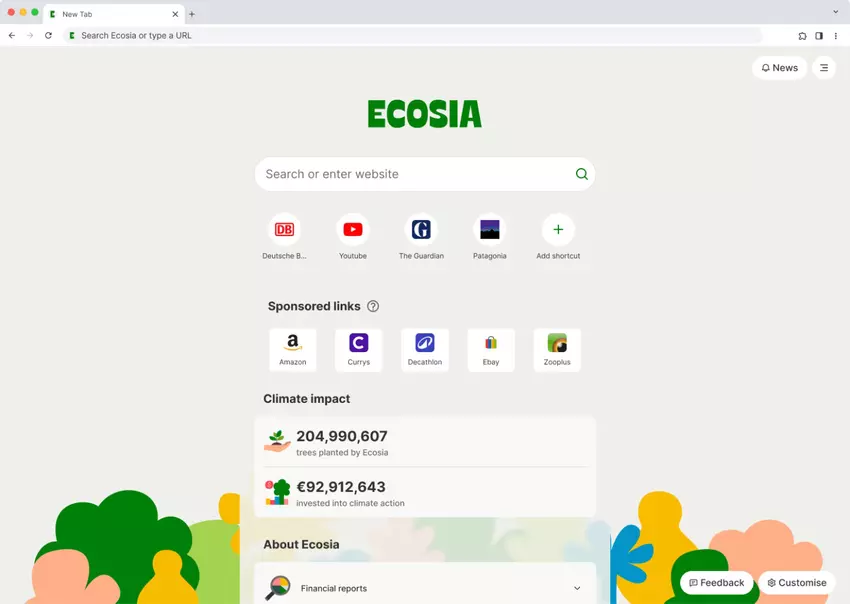 Ecosia, ekologiczna wyszukiwarka finansująca sadzenie drzew, uruchomiła nową przeglądarkę kompatybilną z systemami Mac, Windows, iOS i Android. Zbudowana na bazie Google Chromium, przypomina samą przeglądarkę Chrome. Użytkownicy mogą dostosować stronę docelową i usunąć niepotrzebne sekcje.