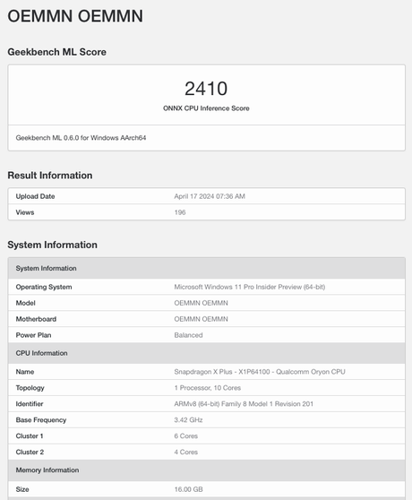 Według przecieków, gadżet będzie napędzany nowym 10-rdzeniowym procesorem Snapdragon X Plus (X1P64100). SoC otrzyma maksymalną prędkość taktowania 3,42 GHz i dwa klastry po 6 wydajnych i 4 wydajnych rdzeni. Oprócz tego chipset będzie wyposażony we wbudowany modem X65.
