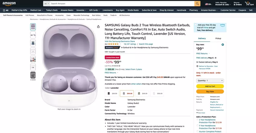 Samsung Galaxy Buds 2 dostępny na Amazon ze zniżką 50 USD