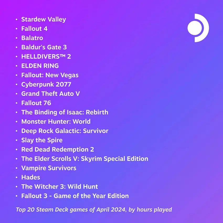 Gwiazda Fallouta i furora Stardew Valley: opublikowano 20 najpopularniejszych gier kwietnia wśród użytkowników konsol przenośnych Steam Deck