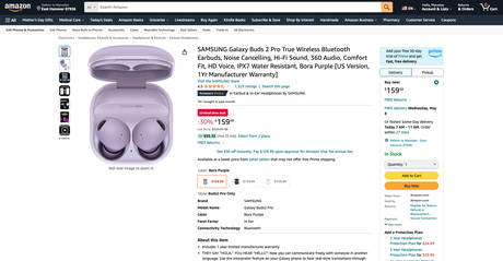 Oferta ograniczona czasowo: Samsung Galaxy Buds 2 Pro z ANC i do 29 godzin autonomii na Amazon z rabatem 70 USD