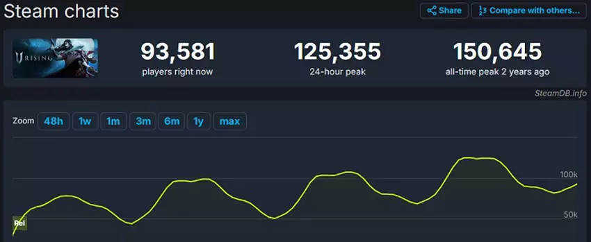 Kilka dni po premierze V Rising 1.0, gra szwedzkiego studia Stunlock Studios ustanowiła nowy rekord szczytowej gry online: 150 000 osób grało w grę w tym samym czasie.