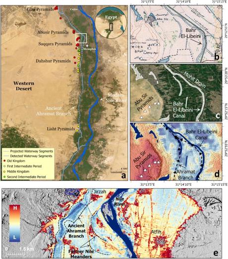 Według nowego badania, 31 egipskich piramid zostało zbudowanych na brzegach nieistniejącej już odnogi Nilu. Wyjaśnia to dziwną lokalizację grupy piramid na wąskim kawałku ziemi pośrodku płaskowyżu Pustyni Zachodniej, ponieważ większość starożytnych egipskich osad znajdowała się w pobliżu rzeki. Nil był główną arterią transportową Egiptu przez całą historię, więc sensowne jest, aby duży projekt budowlany był zlokalizowany na brzegu, gdzie statki były rozładowywane, a nie dziesiątki kilometrów dalej na środku pustyni.