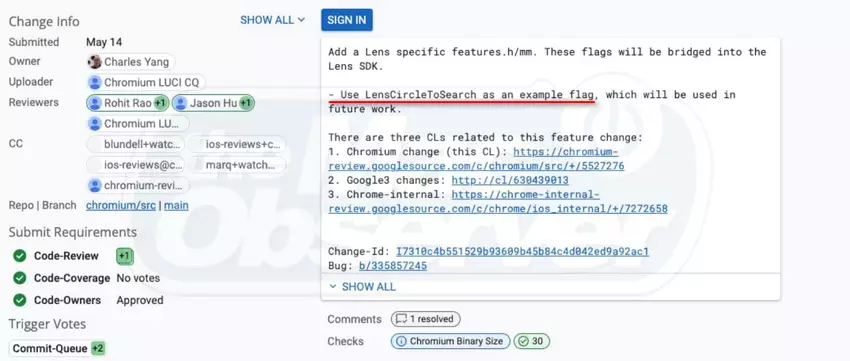 The Mac Observer zauważył możliwość dodania nowego pola wyboru "Lens Circle to Search" do kodu przeglądarki, co oznacza, że użytkownicy mogą wyszukiwać elementy, okrążając je na ekranie w Chrome dla iOS. Po włączeniu, funkcja ta będzie dostępna w Google Lens na urządzeniach z systemem iOS. Nie jest jasne, czy będzie to dotyczyło tylko iPhone'ów, ale historycznie nowe funkcje są najpierw dodawane do smartfonów Apple, a następnie do tabletów.