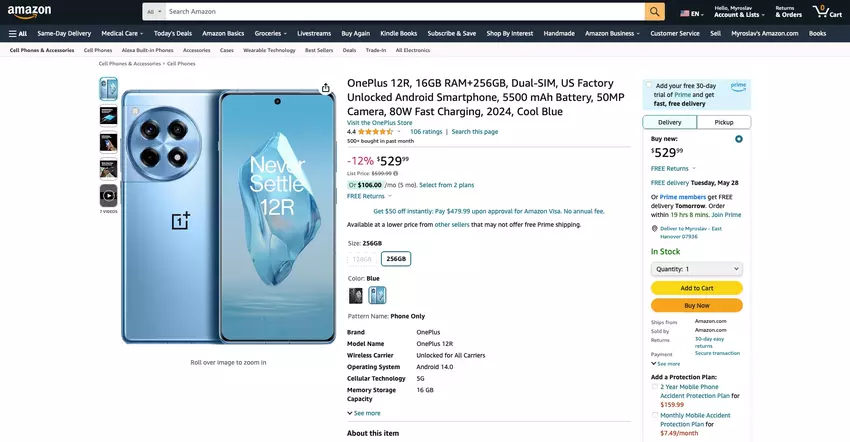 OnePlus 12R na Amazon: smartfon z układem Snapdragon 8 Gen 2, baterią 5500 mAh i 256 GB pamięci za 70 USD taniej