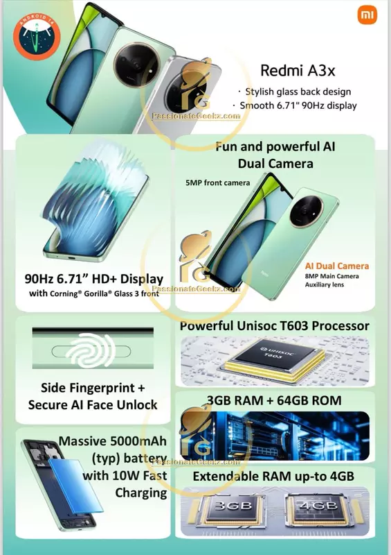 Insider @passionategeekz opublikował zdjęcia marketingowe Redmi A3x, które ujawniają specyfikację urządzenia.
