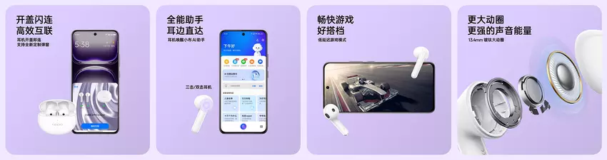 Mowa o modelu OPPO Enco R3 o konstrukcji podobnej do AirPods. Słuchawki mają stopień ochrony IPX4 i dynamiczne przetworniki 13,4 mm pokryte tytanem. Słuchawki obsługują technologię dźwięku przestrzennego, zapewniając w pełni wciągające wrażenia. Urządzenie posiada mikrofon z redukcją szumów podczas rozmów i tryb gier audio o niskim opóźnieniu. Na jednym ładowaniu OPPO Enco R3 wytrzymają do 35 godzin (z etui).