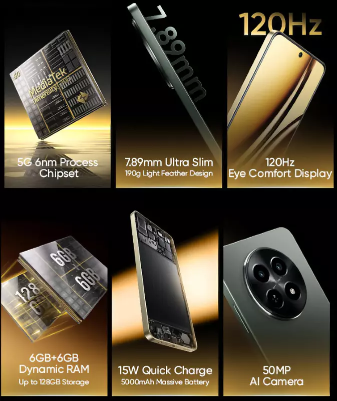 Nowość jest napędzana przez procesor MediaTek Dimensity 6300 w połączeniu z 4/6 GB pamięci RAM i 128 GB pamięci masowej. Smartfon wyposażono w aparat główny 50 MP z czujnikiem ISOCELL JN1 i przedni aparat 8 MP z czujnikiem OmniVision OV08D10.