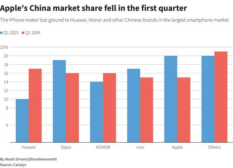 Głównym powodem tego wzrostu były duże rabaty od Apple, 2300 juanów (320 USD) na niektóre modele. Promocje te prawdopodobnie nadal będą napędzać sprzedaż iPhone'ów w maju.