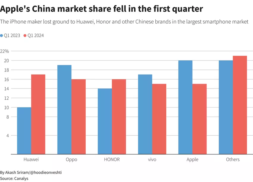 Ogromne obniżki rozpoczęły się po tym, jak Huawei wprowadził na lokalny rynek swoją serię Pura 70. Huawei wyprzedził Apple i jest obecnie drugą co do wielkości marką smartfonów w Chinach po Honor, byłej spółce zależnej Huawei.