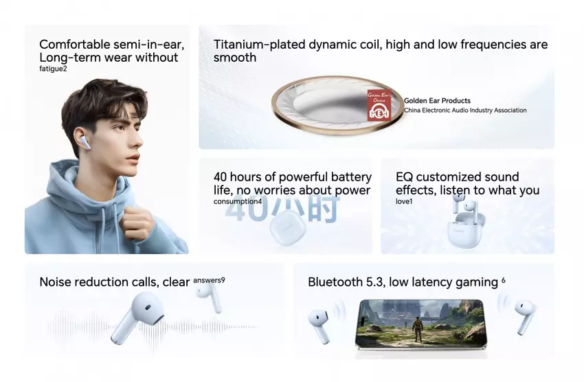 Podobnie jak w przypadku słuchawek Earbuds X7, Honor zrezygnował z silikonowych końcówek widocznych u większości swoich konkurentów i zamiast tego zdecydował się na konstrukcję z połową wkładki dousznej. Słuchawki Earbuds A są wyposażone w 10-milimetrowe dynamiczne przetworniki i obsługują technologię łączności Bluetooth 5.3, podobnie jak droższe słuchawki Earbuds X7.