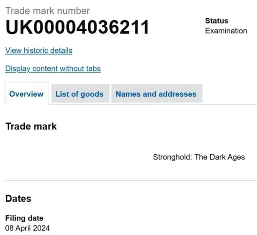 W sieci pojawiła się informacja, że jeszcze w kwietniu studio złożyło wniosek o rejestrację znaku towarowego Stronghold: The Dark Ages, który obecnie jest rozpatrywany i weryfikowany.