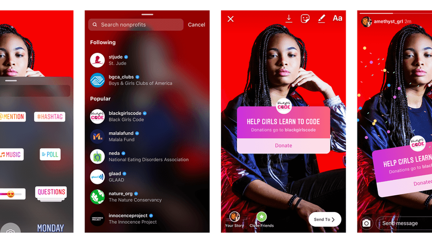 Po drugie, do opowiadań dodano naklejkę na datki. W rezultacie użytkownicy będą mogli wysyłać pieniądze na potrzeby konkretnej organizacji non-profit jednym kliknięciem. Wszystkie zebrane pieniądze zostaną wysłane do tej organizacji.