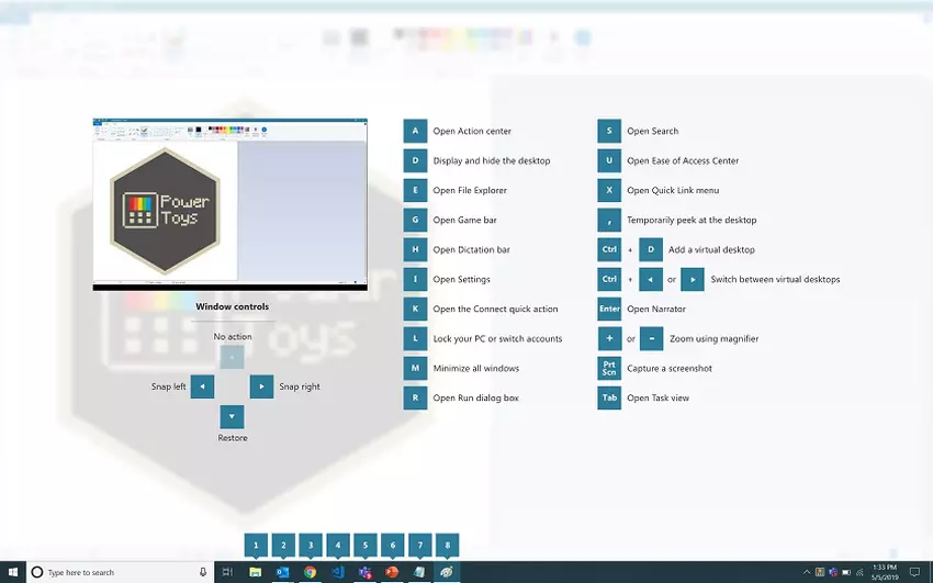 Drugą funkcją jest przewodnik skrótów systemu Windows, który można wywołać, przytrzymując klawisz Windows dłużej niż sekundę. Narzędzie pokaże wszystkie kombinacje dostępne w systemie.