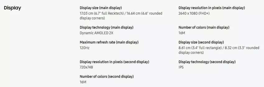 Specyfikacja wyświetlacza Galaxy Flip 6, w której wspomniano o technologii IPS drugiego wyświetlacza