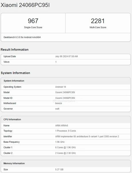 POCO M6 Plus 5G został wcześniej zauważony na liście certyfikacyjnej Google Play, gdzie otrzymał numer modelu 24066PC95I. Teraz urządzenie o tym samym numerze pojawiło się w bazie danych Geekbench.