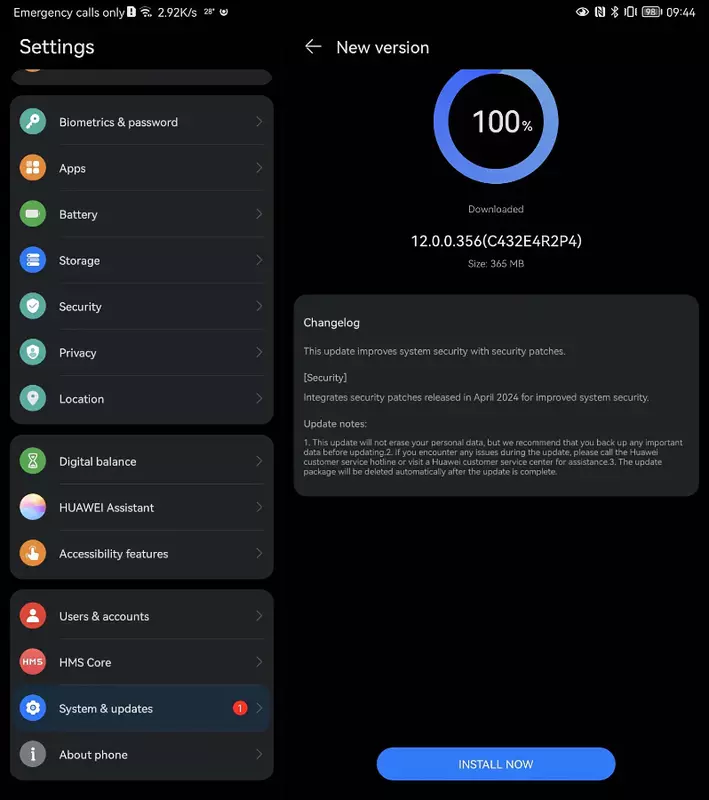 Aktualizacja została wydana pod nazwą EMUI 12.0.0.356 i jest już wdrażana na urządzenia na całym świecie falami. Oprogramowanie waży 365 MB.