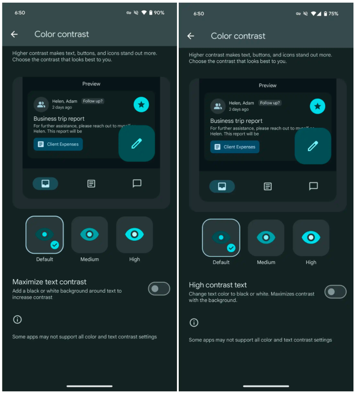 Deweloperzy zmienili element Maksymalizuj kontrast tekstu na Tekst o wysokim kontraście.