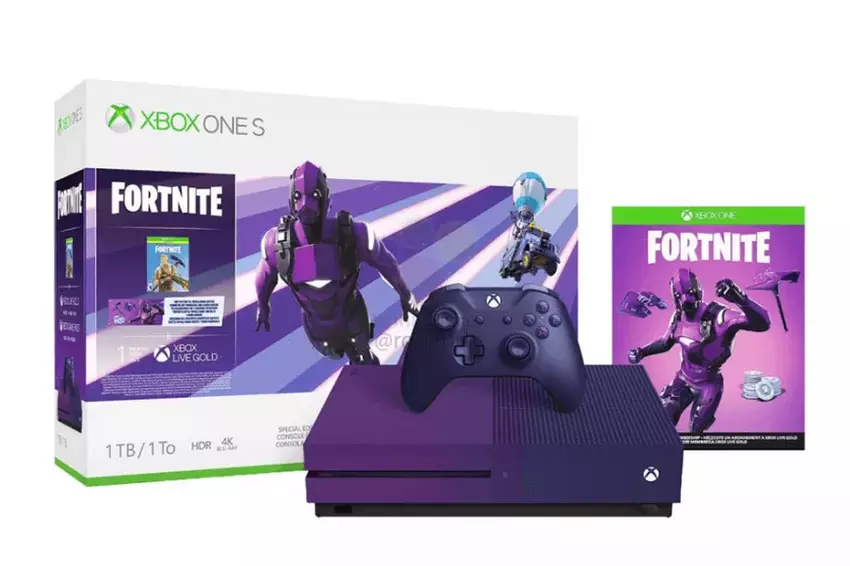 Według przecieku, Microsoft wyda fioletową Xbox One S w najbliższej przyszłości. Fortnite Limited Edition będzie również zawierać nową skórkę Dark Vertex, 2000 jednostek walut w grze, miesiąc Xbox Live Gold, EA Access i Xbox Game Pass.