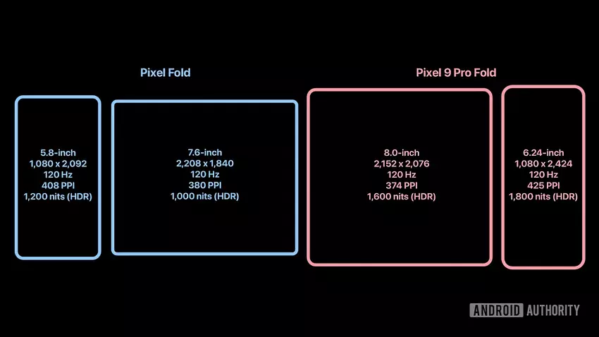 Pixel 9 Pro Fold otrzyma bardziej standardowe parametry i będzie podobny do OnePlus Open. Główny ekran zostanie wyposażony w 8-calową matrycę AMOLED o rozdzielczości 2152×2076p, częstotliwości odświeżania 120 Hz i jasności szczytowej 1600 nitów. Zewnętrzny panel otrzyma tę samą matrycę, ale o przekątnej 6,24 cala.