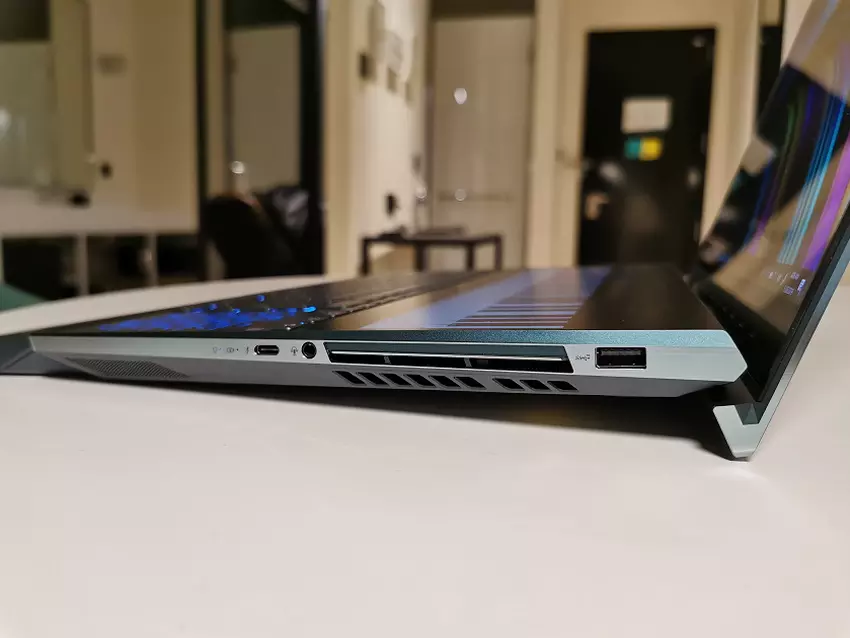 Laptop działa na procesorze Intel Core i9 z kartą graficzną NVIDIA GeForce RTX 2060, ma do 32 GB pamięci RAM. Obudowa ma cztery mikrofony, port Thunderbolt 3, dwa porty USB-A, gniazdo słuchawkowe i port HDMI.