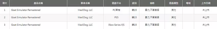 Wzmianka o grze Goat Simulator Remastered, która ma zostać wydana na PC, PlayStation 5 i Xbox Series, została znaleziona na stronie tajwańskiej agencji ratingowej.