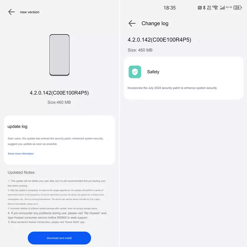 Wraz z aktualizacją HarmonyOS 4.2.0.142 smartfony otrzymały aktualną poprawkę zabezpieczeń, która usuwa różne luki w systemie. Ponadto twórcy poprawili stabilność oprogramowania.