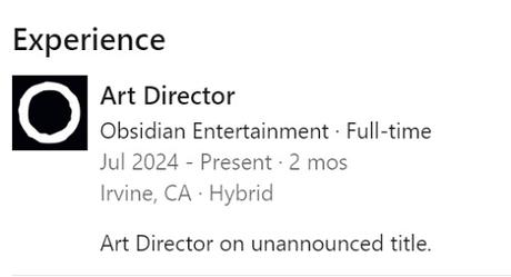 Niedawno do zespołu Obsidian dołączył dyrektor artystyczny Daniel Cabuco, który wspomniał na swojej stronie LinkedIn, że pracuje nad jakąś niezapowiedzianą grą.