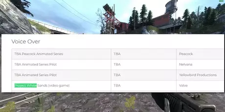 Uważni użytkownicy sieci znaleźli na stronie aktorki Natashy Chandel (Natasha Chandel), która pracowała przy Starfield, Apex Legends i wielu innych grach AAA, wzmiankę o grze White Sands autorstwa Valve. Po upublicznieniu informacji aktorka usunęła wzmiankę o projekcie, ale zrzuty ekranu oczywiście pozostały.