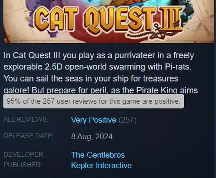 Użytkownicy Steam pozostawiają "bardzo pozytywne" recenzje na temat gry, chwalą jej grafikę, rozgrywkę i oprawę muzyczną. Przy okazji, w tym serwisie Cat Quest III można nabyć z 10% zniżką.