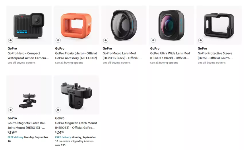 Wyciek za pośrednictwem aukcji Amazon pokazuje, że nowa kamera jest bardzo podobna do Hero 12 Black, z naciskiem na rozszerzenie opcji akcesoriów.