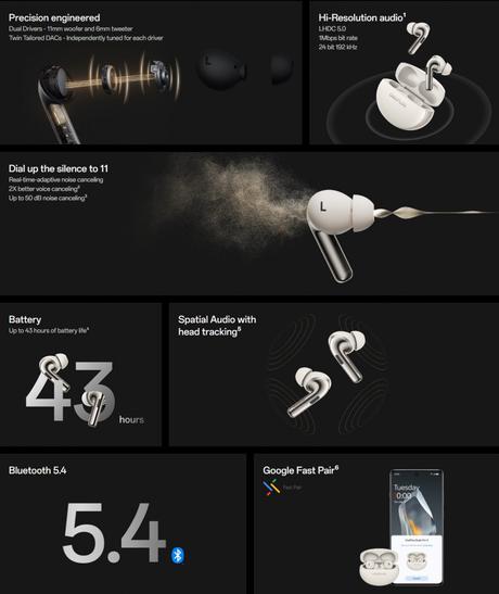 Słuchawki są wyposażone w podwójne głośniki 11 mm i 6 mm. Główną różnicą w stosunku do poprzedniego modelu jest nowy podwójny system DAC. Jeden DAC zasila głośnik niskotonowy, podczas gdy drugi jest podłączony do głośnika wysokotonowego. Ponadto konstrukcja głośnika niskotonowego wykorzystuje teraz dwa magnesy, co jest kolejnym ulepszeniem w stosunku do OnePlus Buds Pro 2. Zarówno głośnik niskotonowy, jak i wysokotonowy są wyposażone w nowe membrany. Za dostosowanie dźwięku urządzenia odpowiadają specjaliści Dynaudio.