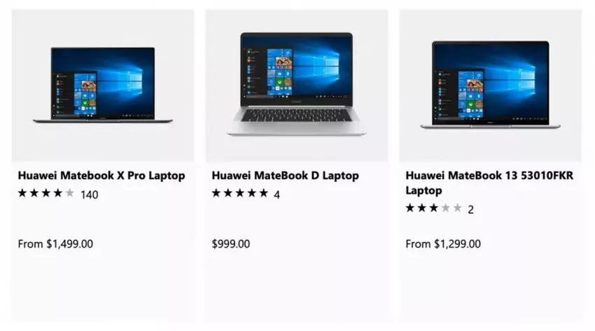 Oznacza to, że podczas gdy nie mówimy o przyszłych modelach laptopów, Microsoft sprzedaje tylko pozostałości magazynowe. Witryna oferuje Huawei MateBook X Pro za 1,499 USD, MateBook D za 999 USD oraz MateBook 13 z procesorami Intel Core i5 i Core i7 za odpowiednio 999 USD i 1299 USD.