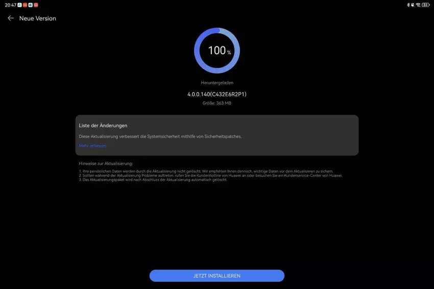 Zgodnie z oficjalną listą zmian, Huawei zainstalował w systemie aktualną poprawkę bezpieczeństwa, która usuwa różne luki w oprogramowaniu.