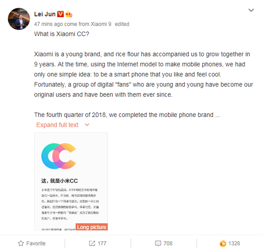 Według prezesa Xiaomi, teraz firma będzie miała trzy serie urządzeń: Redmi, Mi i CC. Ten ostatni oznacza Colorful & Creative lub Camera & Camera. Najmłodszy zespół inżynierów o nazwie Chic & Cool 90, w skład którego wchodzą także pracownicy wcześniej nabytego Meitu, pracuje nad stworzeniem tych smartfonów. Jednostka ta będzie zaangażowana w rozwój urządzeń dla młodych ludzi o pięknym wyglądzie i dobrych kamerach.