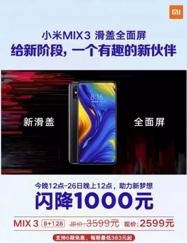 Zmniejszenie ceny oznacza, że producent sprzeda urządzenie i przygotowuje się do wyjścia Mi Mix 4. Zgodnie przecieków, on otrzyma panoramiczny wyświetlacz OLED z podekranową kamerą przednią i skanerem. Urządzenie będzie miał również kamerę główną z trzema lub czterema modułami, szybkie bezprzewodowe ładowanie, baterię na 4000 mAh i flagowy procesor Snapdragon 855.