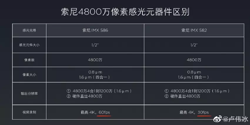 Chociaż użytkownicy i tak nie poczują różnicy. Jedyna różnica  Sony IMX586 w stosunku do „młodszego brata” - wsparcie nagrania wideo  dla formatu 4K przy 60 F / S. Choć smartfon z powodu ograniczeń procesorów będzie mógł nagrywać tylko w 4K przy 30 fps .