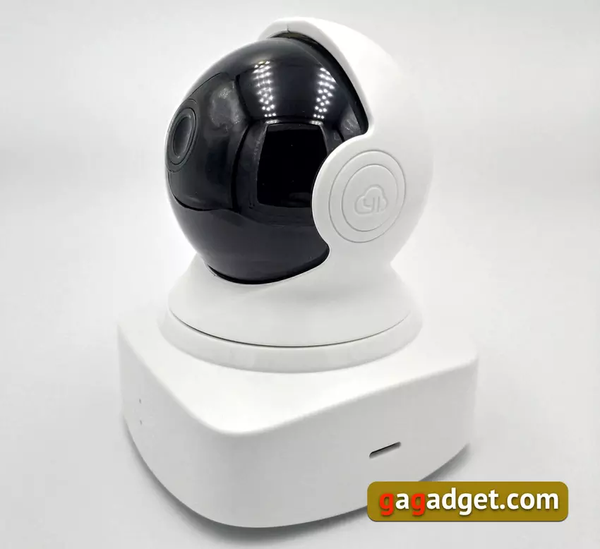 Kamera może obracać głowę o 360 stopni i pochylać oraz podnosić obiektyw o 102 stopnie. Podczas przesuwania silników nie słychać wcale, i oni po prostu nie mogą obudzić dziecka lub kota, ani przestraszyć włamywaczy. A przeciwko nim ten aparat jest całkiem skuteczny: ma wbudowane śledzenie poruszającego się obiektu, to znaczy może podążać za przechodzącymi ludźmi, automatycznie obracając się za nim. Oczywiście, nie reaguje natychmiast na szybki ruch, ale mimo to, jeśli przejdziesz spokojnie, w każdym razie pozostaniesz w ramce - podąży za poruszającym się obiektem, jeśli jesteś sam. Jeśli jest więcej obiektów, kamera nie zrozumie, kogo śledzić, i odwróci się w stronę tych, którzy są bliżej czujników. Kamera może poruszać się o 360 stopni, pokrywając wszystko wokół. Wie nawet, jak robić zdjęcia panoramiczne, przesyłać je później do telefonu lub być kontrolowana z twojej strony - w aplikacji są duże przyciski obracania kamery we właściwym kierunku, krok obracania jest mały i wystarczający do dokładnego dostrojenia pozycji kamery.