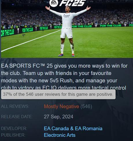 Niestety dla twórców, pierwsze recenzje EA Sports FC 25 na Steam okazały się negatywne. Gracze są niezadowoleni ze stanu technicznego, optymalizacji i braku wsparcia dla gamepadów DualShock 4 i DualSense, choć jest to zaznaczone na stronie gry.